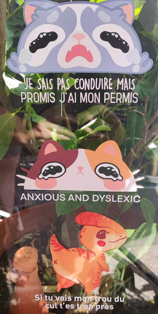 Sticker pour voiture drôle "Anxious and dyslexic"