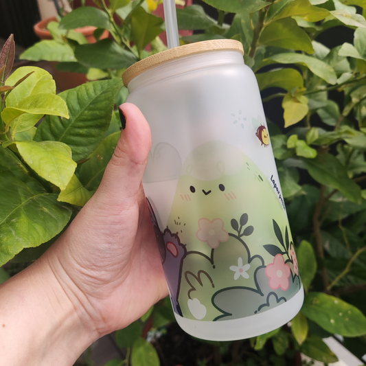Tumbler/ Tasse en verre mignonne "Grabouille la grenouille"