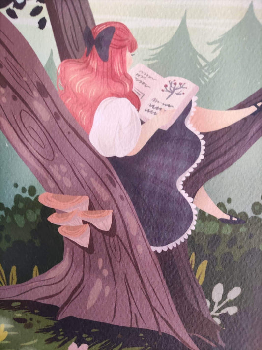Print "Lecture à l’ombre des arbres" format A5 / idee cadeau / print / cottagecore art