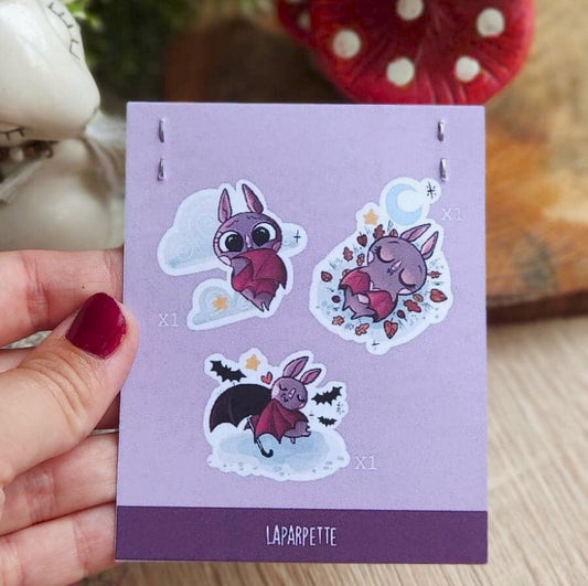 Pack de 3 sticker Lizzie la chauve souris/ stickers d'Halloween / pour planner